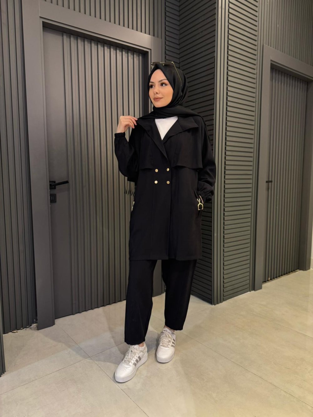 Aksesuar Detaylı Tensel Pantolon Takım Siyah
