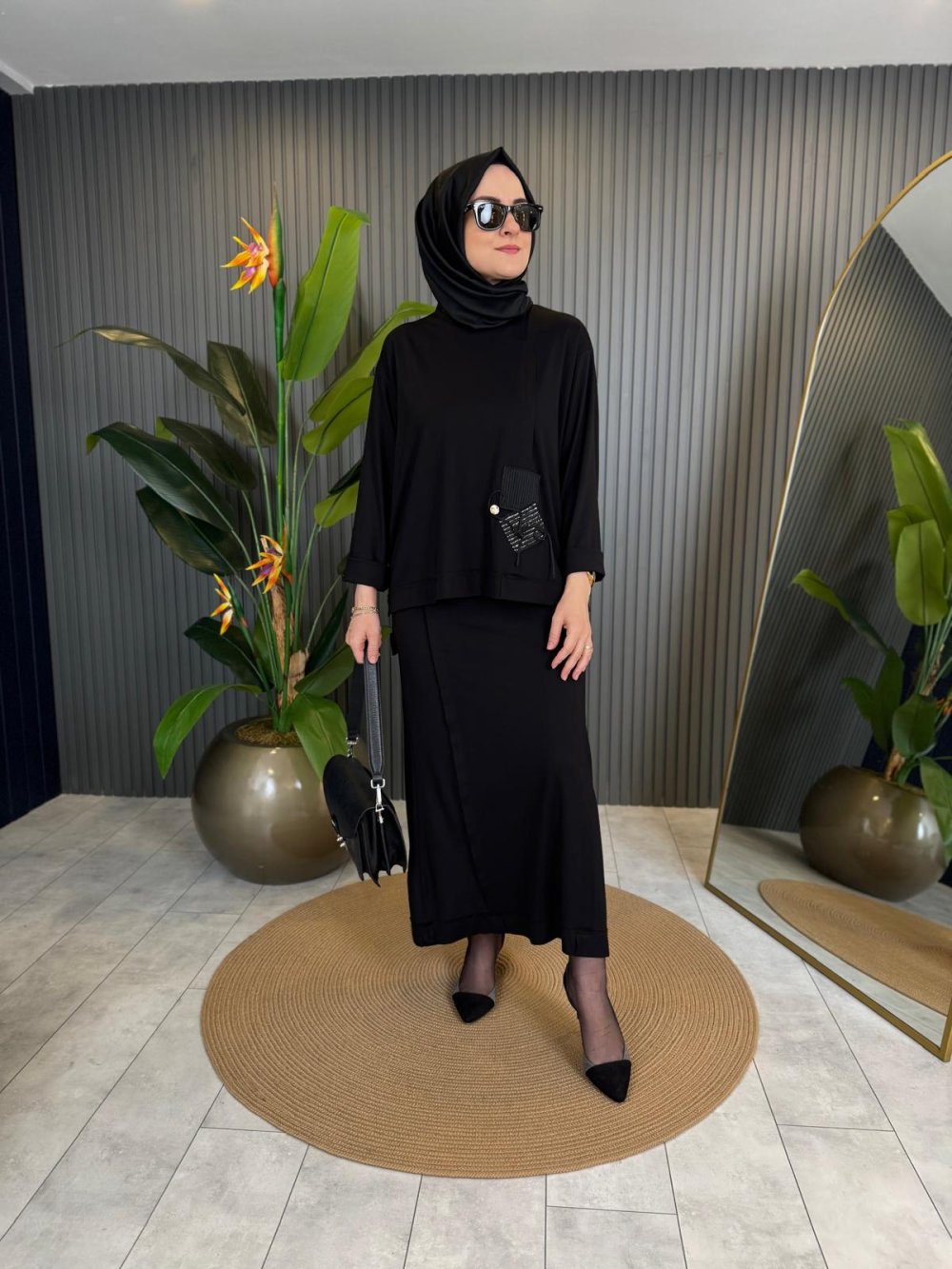 — Bambu Kumaş. Etek beli lastikli iç göstermez.