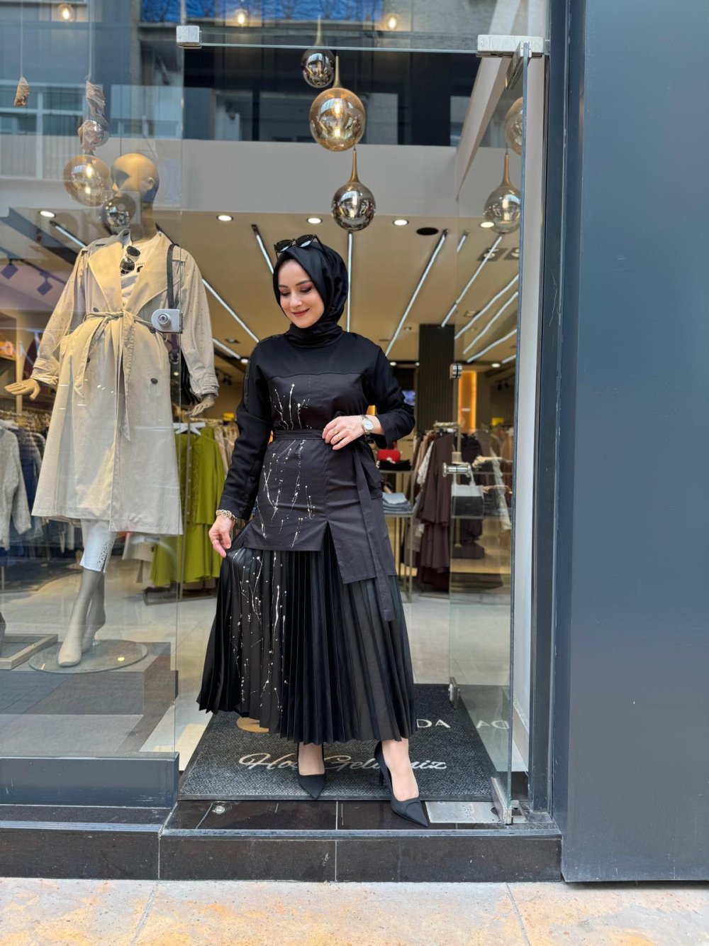 Ürün Açıklaması: Bu rahat ve şık takım, günlük stilinize modern bir dokunuş katmak için tasarlandı. Siyah rengin zarifliği ile birleşen deri kumaş, yumuşak dokusu ve hafif yapısı ile gün boyu konfor sağlar.