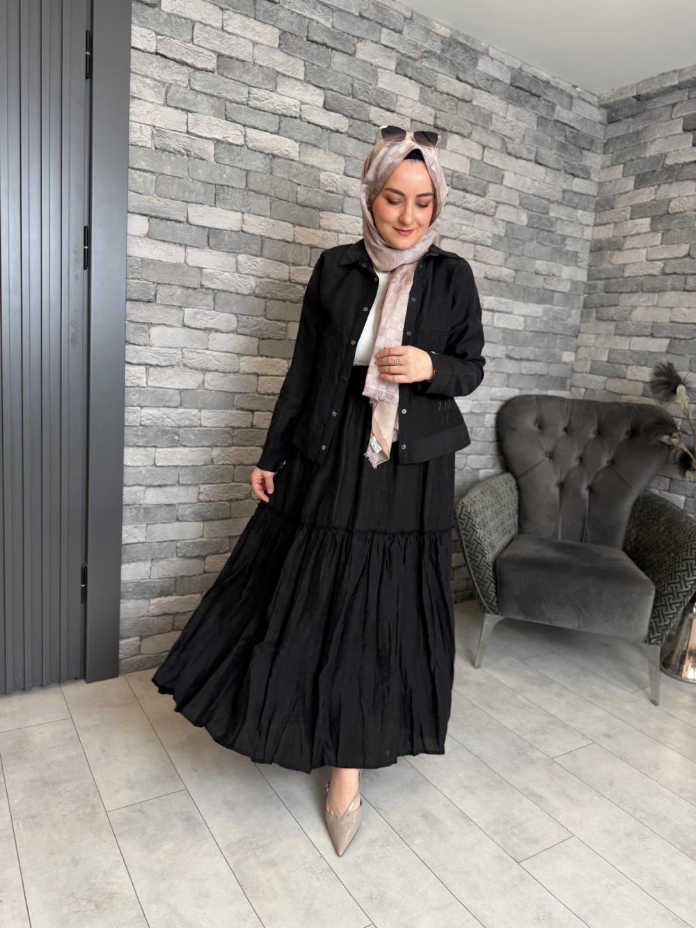 Cebi Baskılı Eteği Kraşlı Takım Siyah