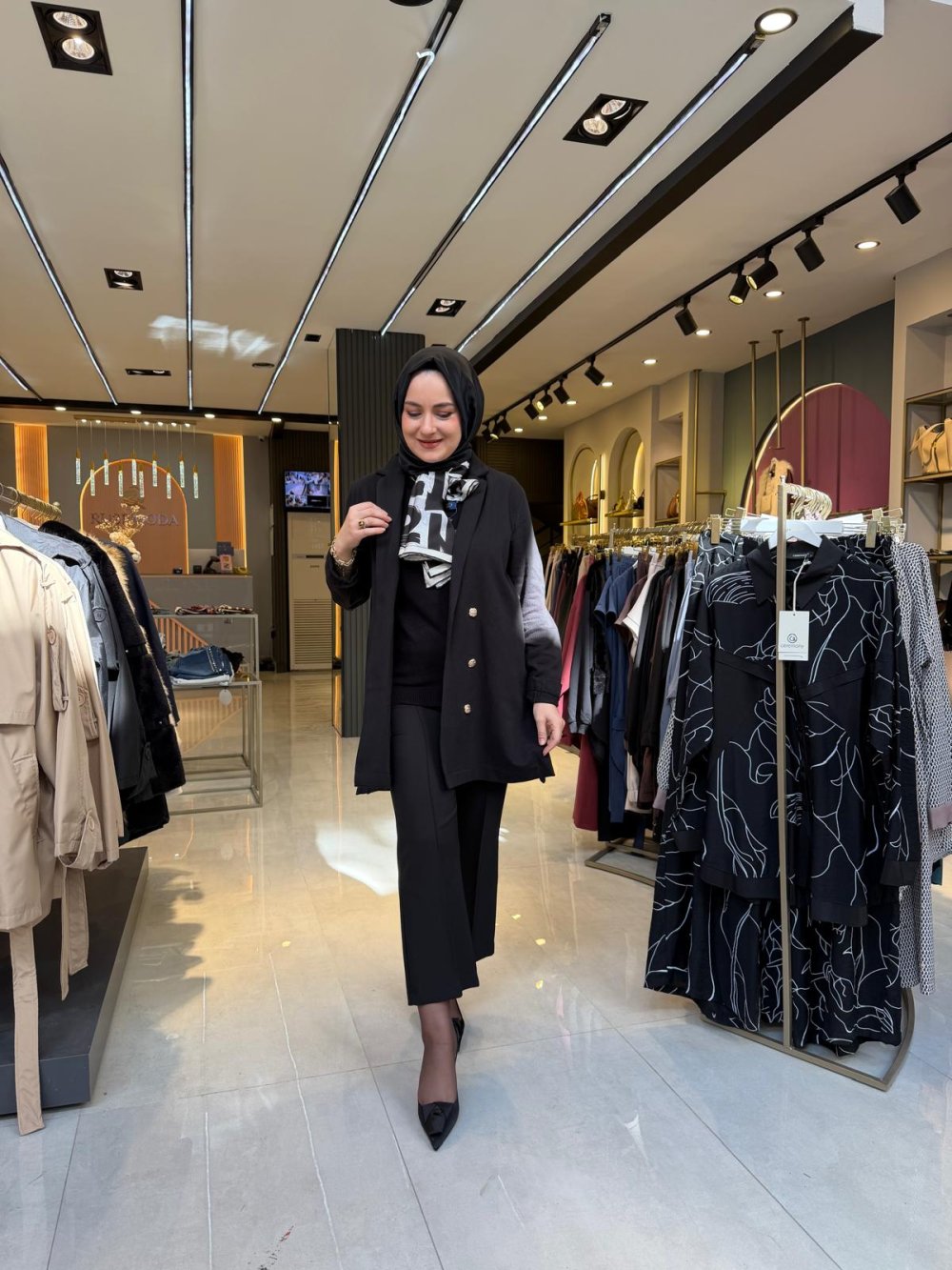 Çift Düğmeli Hüma Keten Ceket Siyah