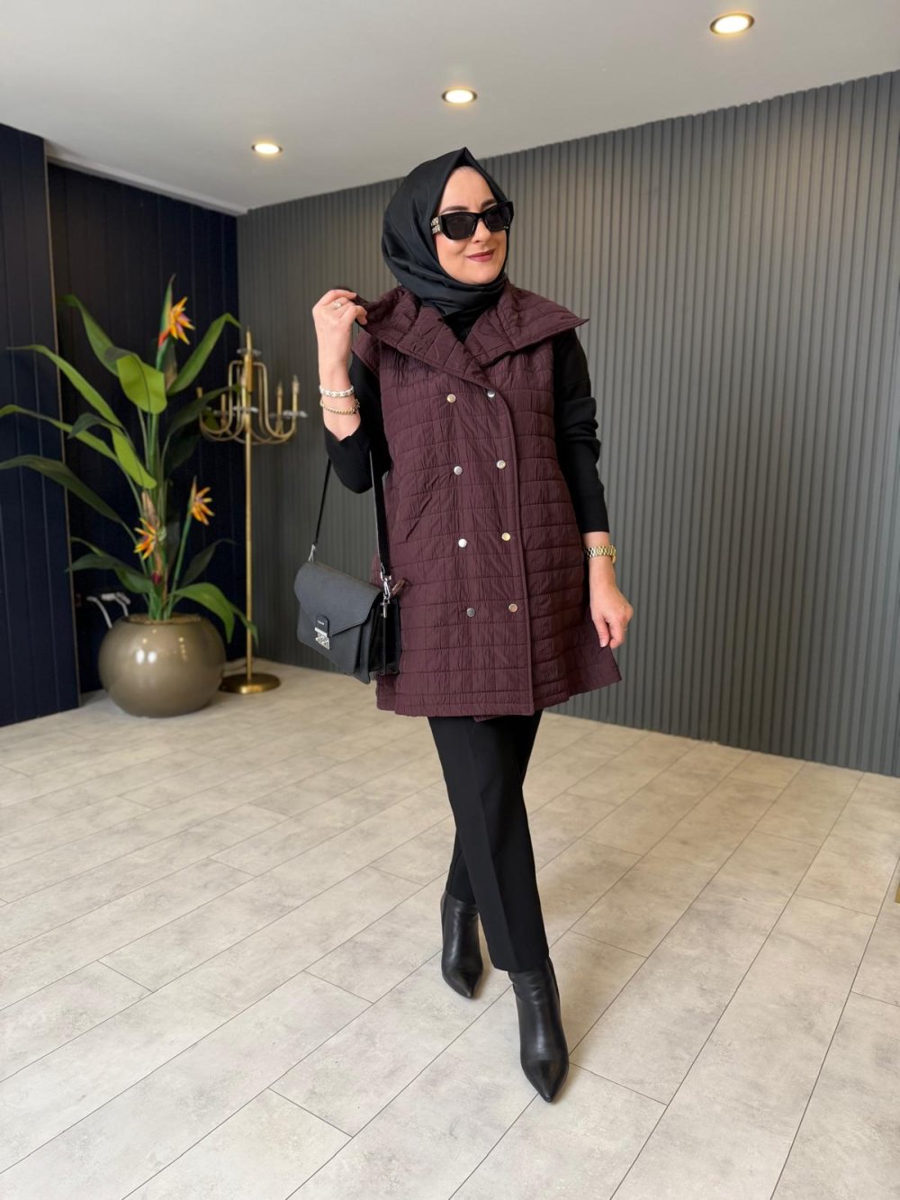 Çıtçıt Detaylı Kapitone Yelek Bordo
