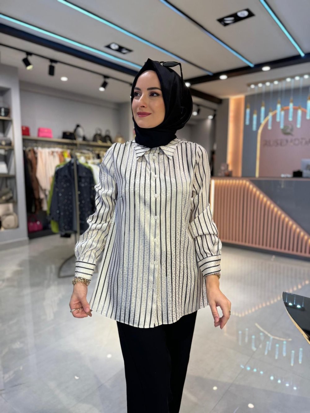 Bu şık gömleğimiz, uçuş uçuş kumaşıyla üzerinizde yokmuş gibi hissiyat verirken  aynı zamanda sizlere şık bir görünüm sağlıyor. Tek renk seçeneği ve şık tasarımıyla çizgili görünümü ister günlük hayatınıza isterseniz de şık bir ofis konseptine uyarlanarak tasarlanmıştır. kumaş kalitesi sizler yormaz, üzerinizde ağırlık yapmaz. Dilerseniz etek ile dilerseniz kalem pantolon ile sizlerin dolabınızın vazgeçilmezi olacaktır.