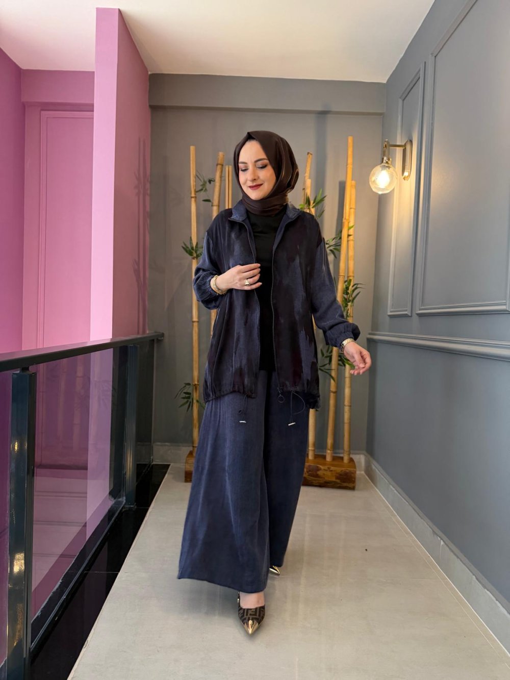 Eftelya İpek Kupra Takım Mavi