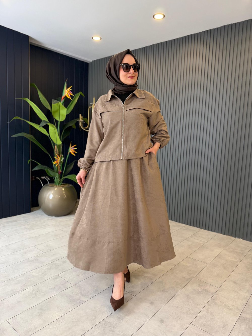 Fermuar Detaylı Nubuk Etekli Takım ??