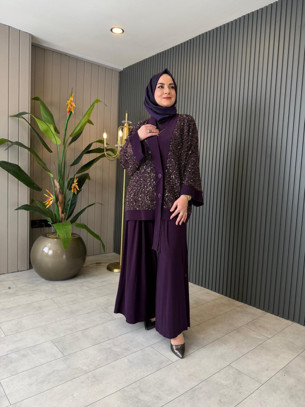 File Pul Payet Üçlü Takım Mürdüm