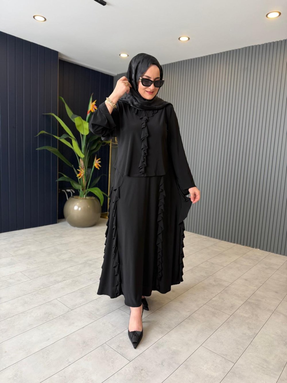 Fırfır Detaylı Etekli Takım Siyah
