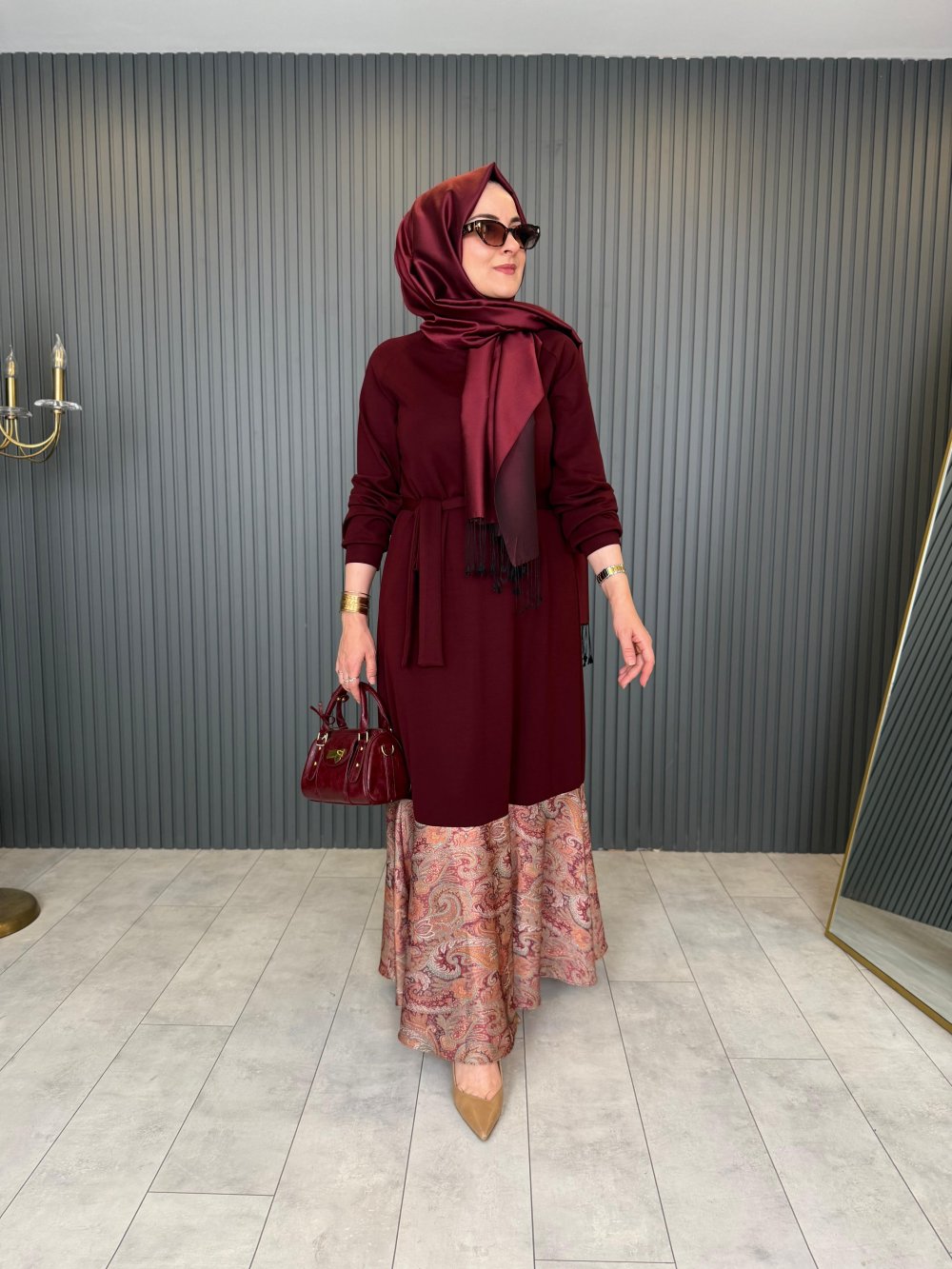 Fular Detaylı Oxford Tasarım Elbise Bordo