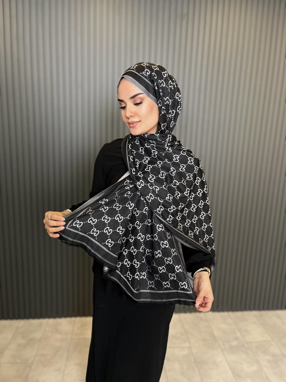 G Desen Çift Taraflı İthal Şal Siyah