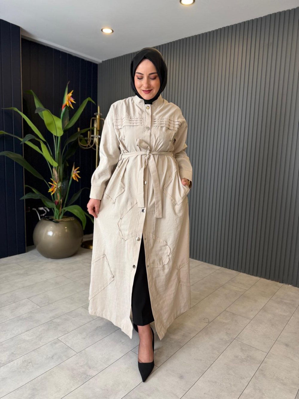 Geometrik Aplikeli Safari Kap Taş Rengi