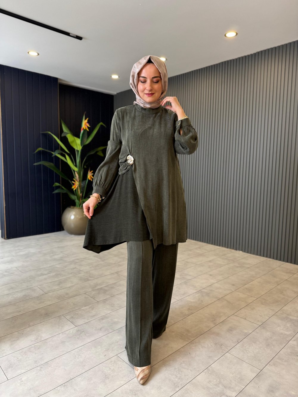 #ORHAN Gümüş Broş Detaylı Cupra Pantolonlu Takım ✨