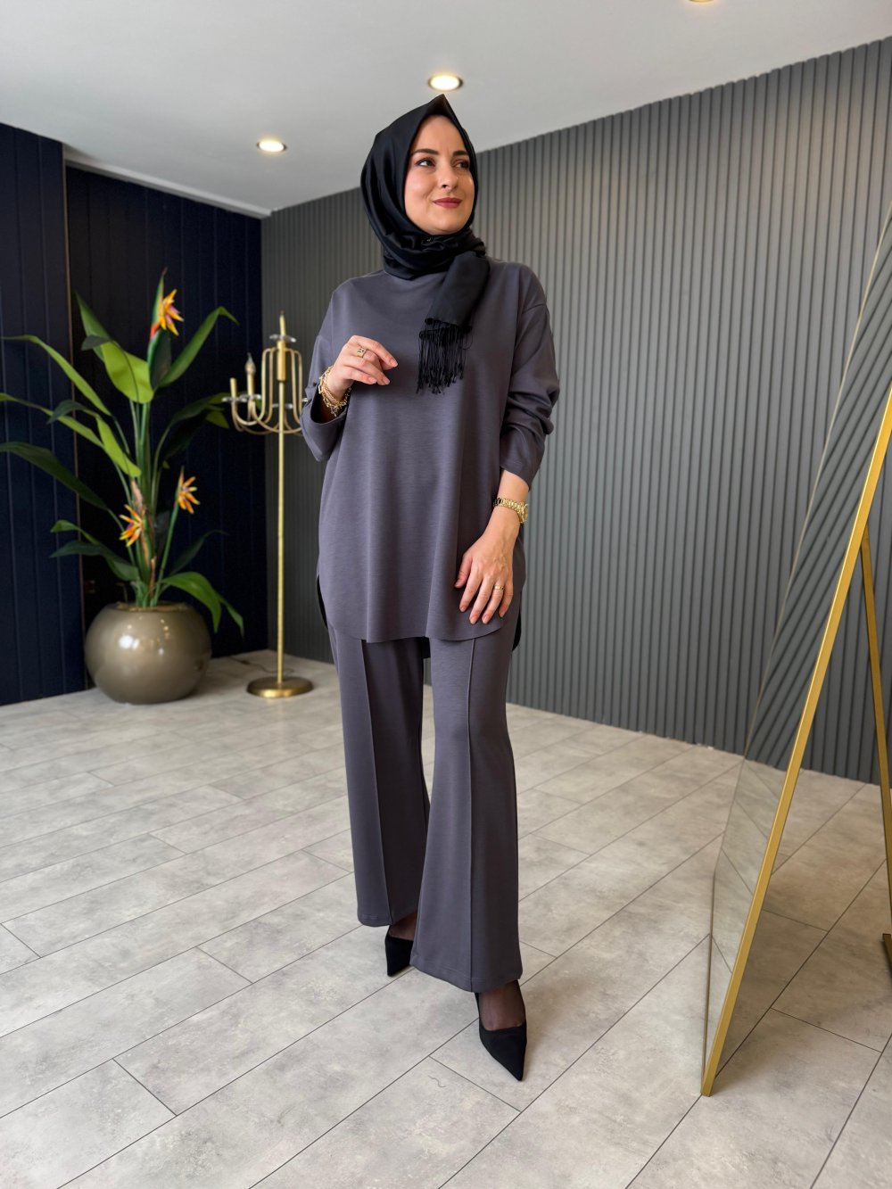 Hüma Rahat Pantolon Takım Gri