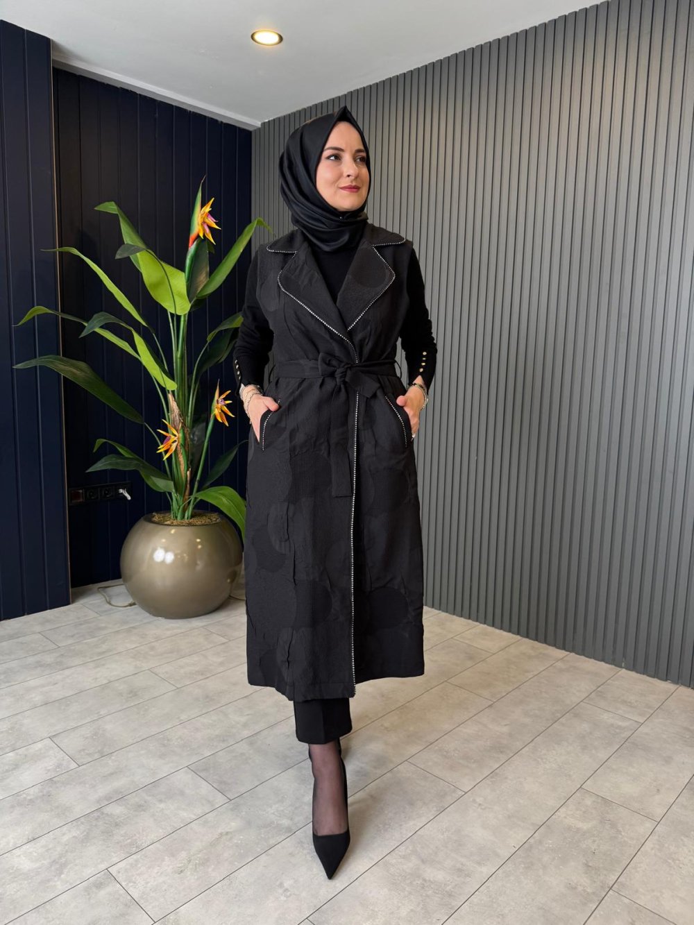 Işıltı Detaylı Kuşaklı Yelek Siyah