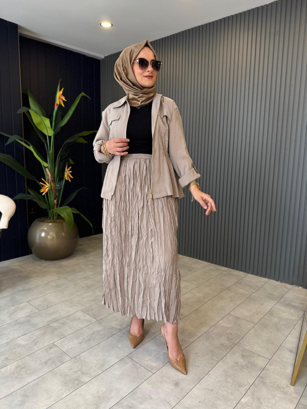 Kraşlı Etekli Takım Taş Rengi