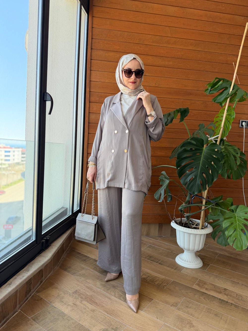 Kruvaze Saphire Pantolonlu Takım Vizon