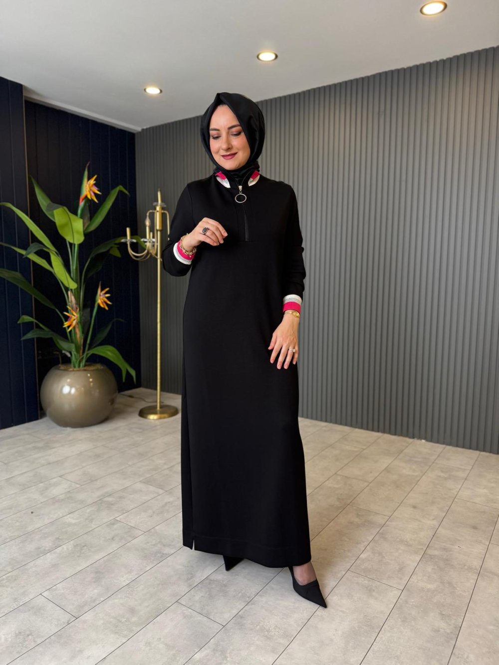 Levidor Simli Ribana Detaylı Elbise Siyah