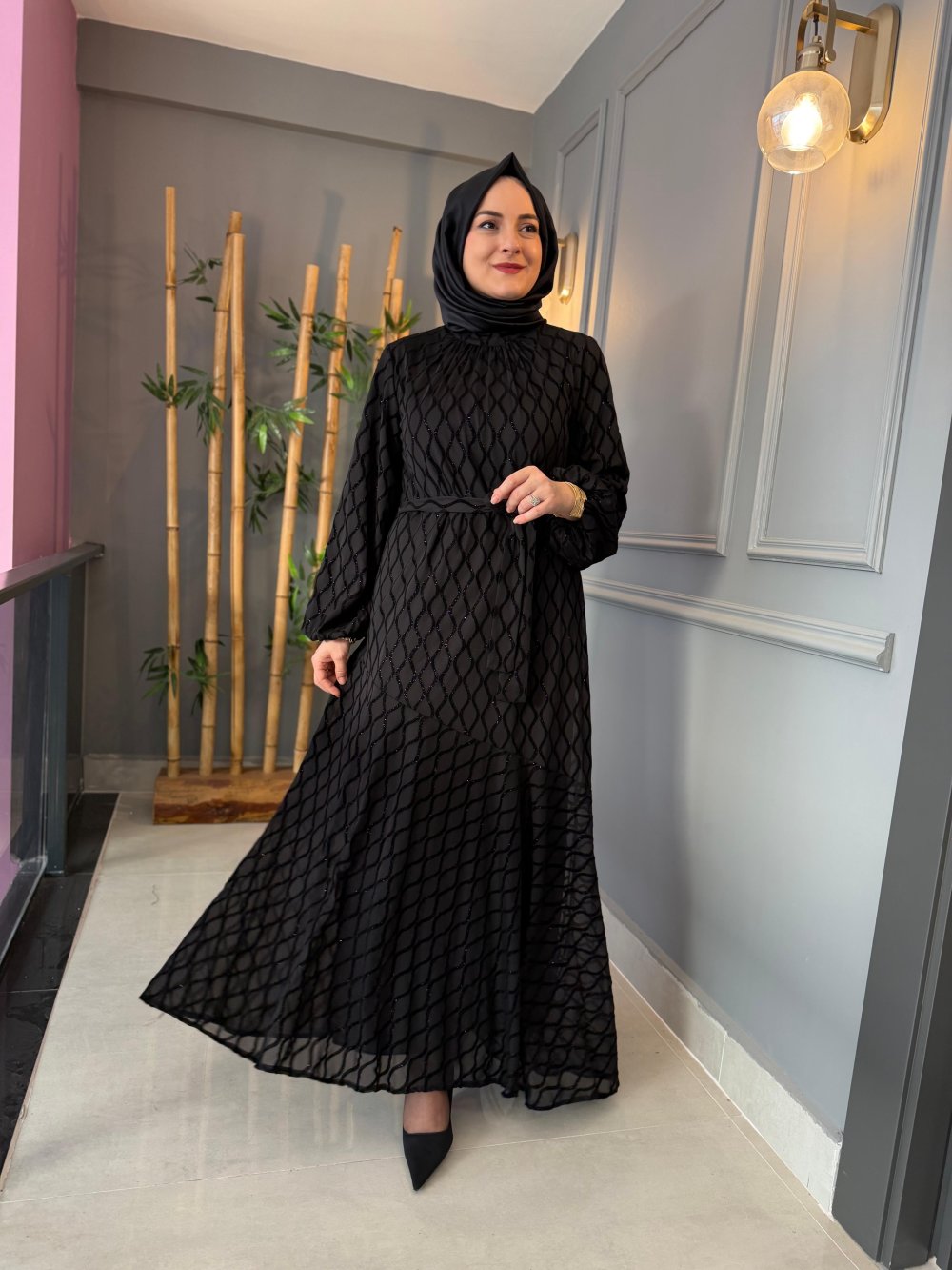 — Kadife detaylı şifon tül Kumaş.Kendi renk astarı mevcuttur.