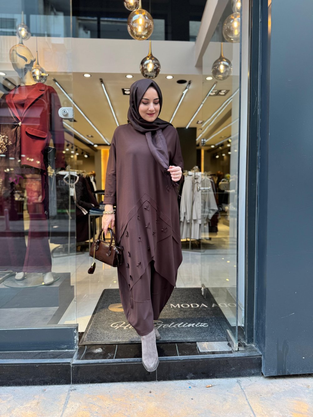 Luna Ön Anvelop Detaylı Pantolon Takım Kahverengi