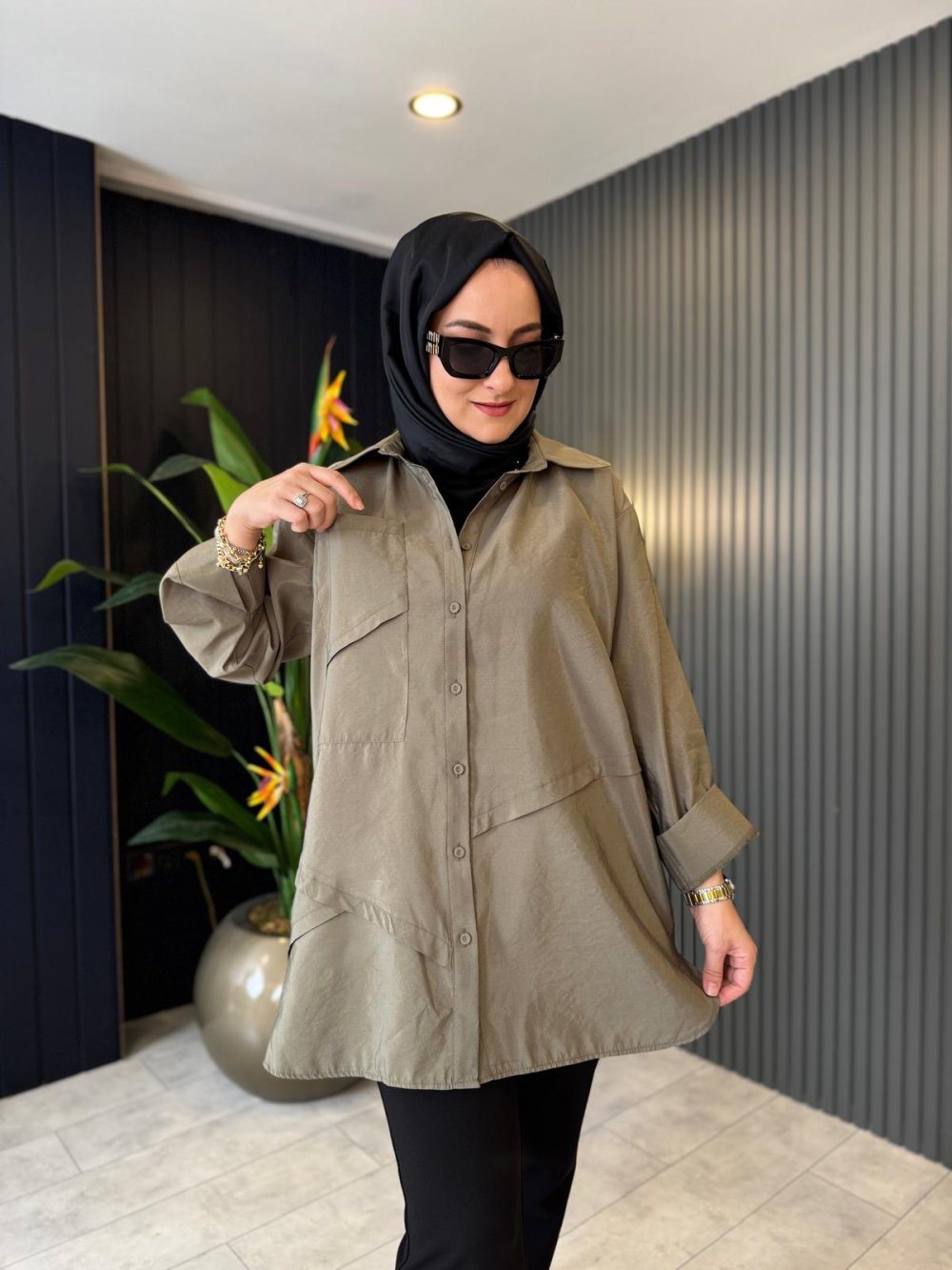 #Ceremony Önden Düğmeli Uzun Cep Detaylı Tunik?