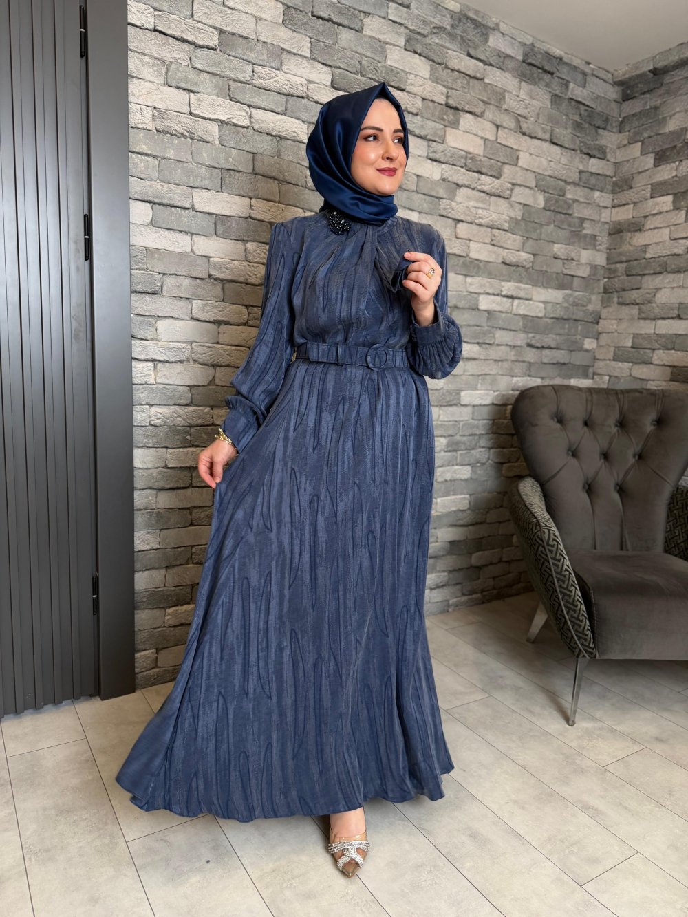 Orhan Özel Tasarım Elbise İndigo Mavi