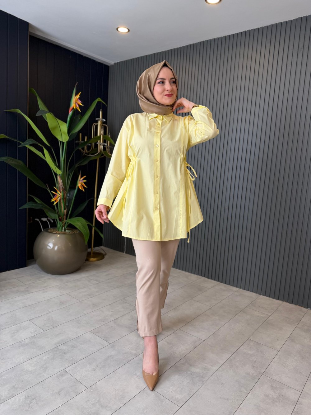 Poplin Tasarım Gömlek Sarı