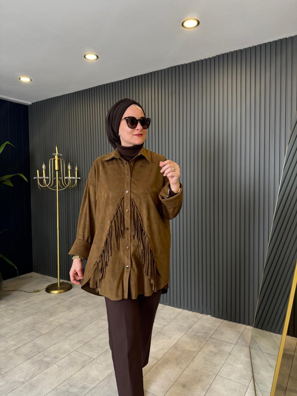 Püsküllü Süet Gömlek Haki