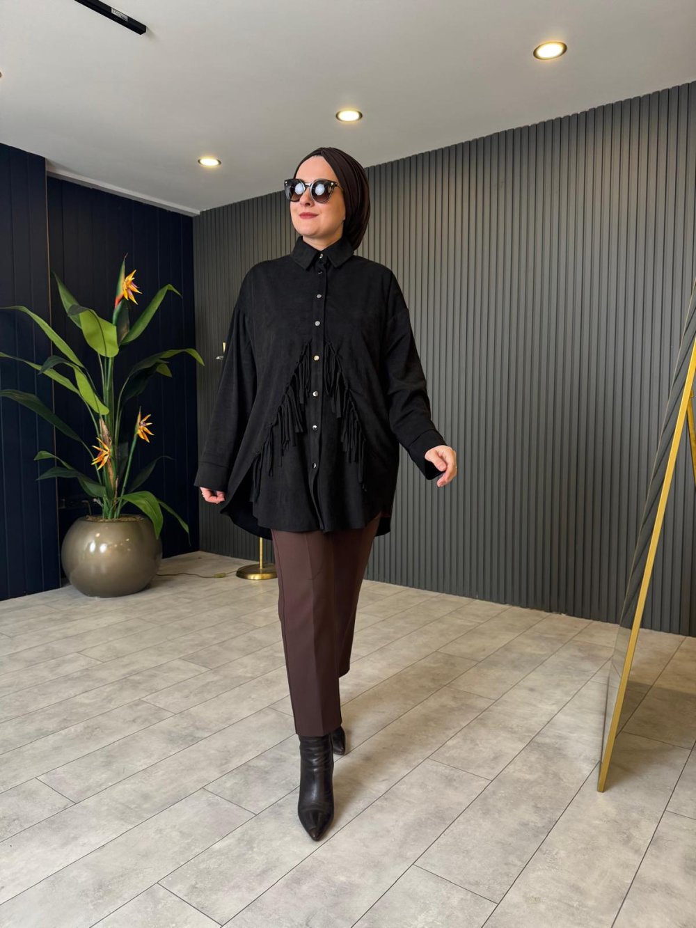 Püsküllü Süet Gömlek Siyah