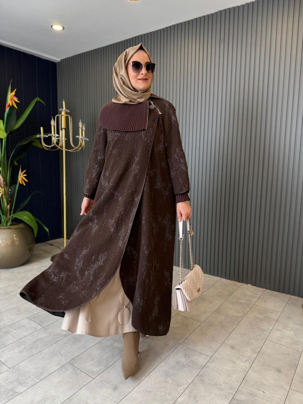 Simli Deri Biye Detaylı Kap Kahverengi