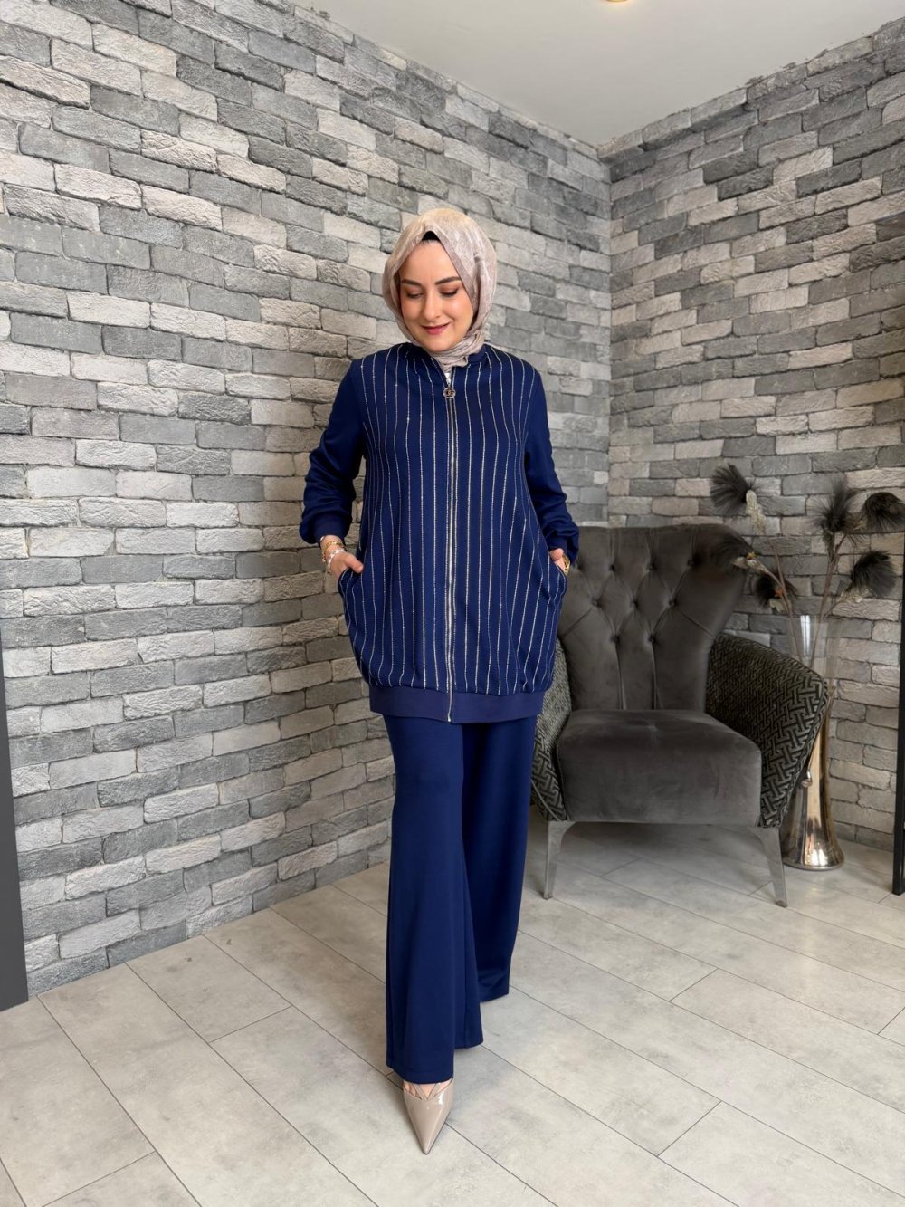 Taş Detaylı Pantolon Takım Parlement Mavi