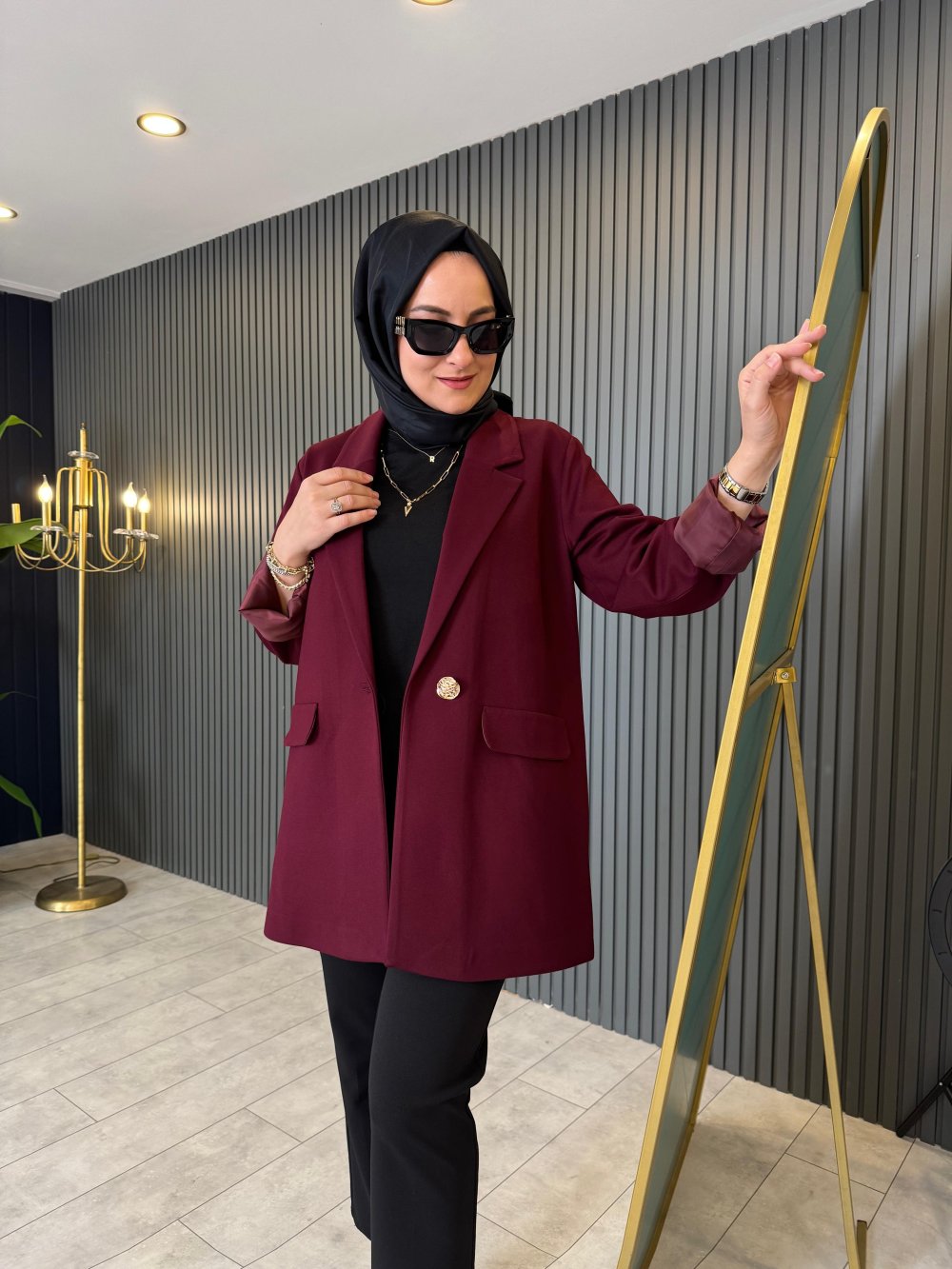 Tek Düğmeli Blazer Ceket Mürdüm